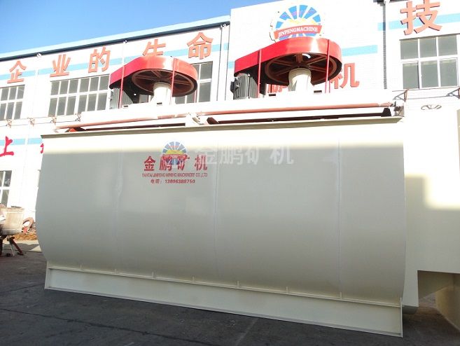 XCF型與KYF型浮選機(jī)均屬充氣型浮選機(jī),葉輪直徑小,圓周速度低,可降低功率30-50%;槽內(nèi)設(shè)有一個空氣分配器,因而空氣分散均勻;葉輪起離心泵作用,可使固體顆粒充分懸浮;采用U型槽結(jié)構(gòu),可使尾砂沉淀積最少;葉輪結(jié)構(gòu)及葉片間隙流倒設(shè)計合理,葉輪磨損較均勻,葉輪、定子使用壽命長。
